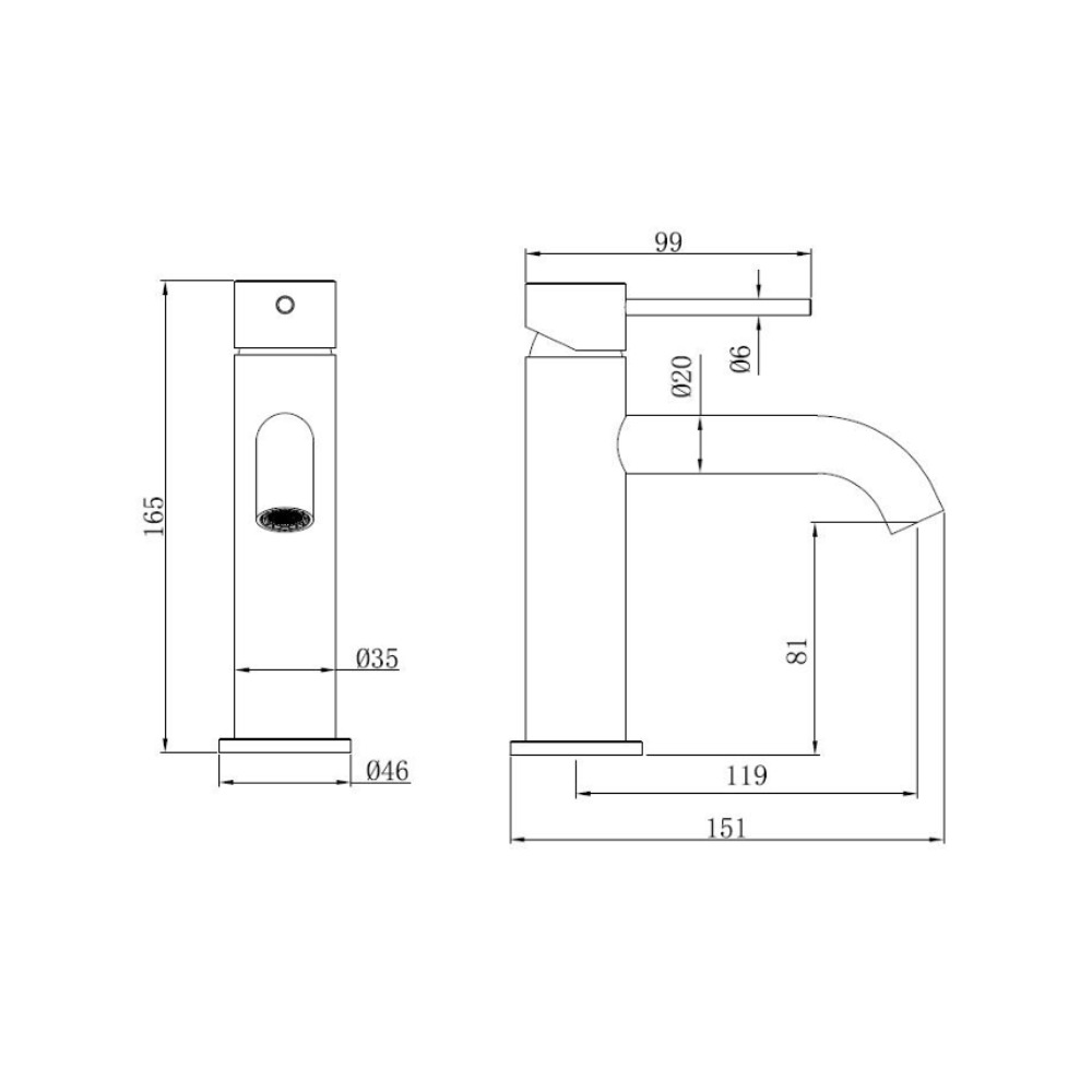 - Hauteur du robinet : 16,5 cm