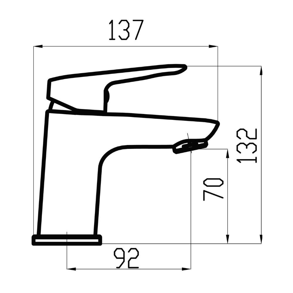 Robinet de bain Levier sans Déchets en finition chromée. Le débit est de 6 litres/minute. La hauteur du mitigeur est de 13,2 cm. La hauteur du bras est de 7 cm. En couleur brillante.