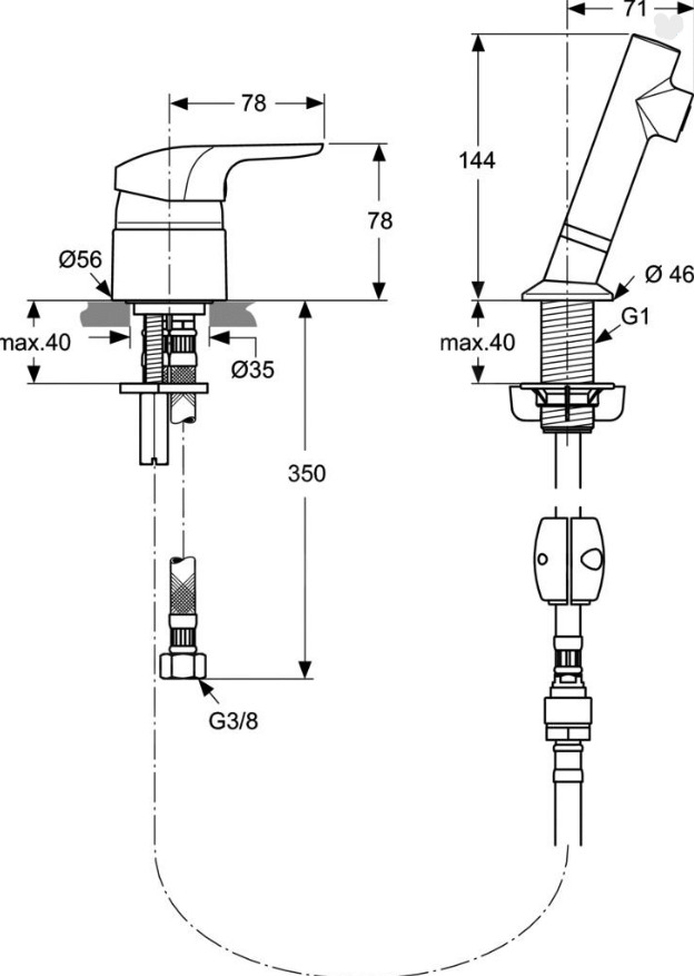 Ideal Standard Ceraflex Mitigeur avec douchette 2 trous 2 jets (A5727AA)