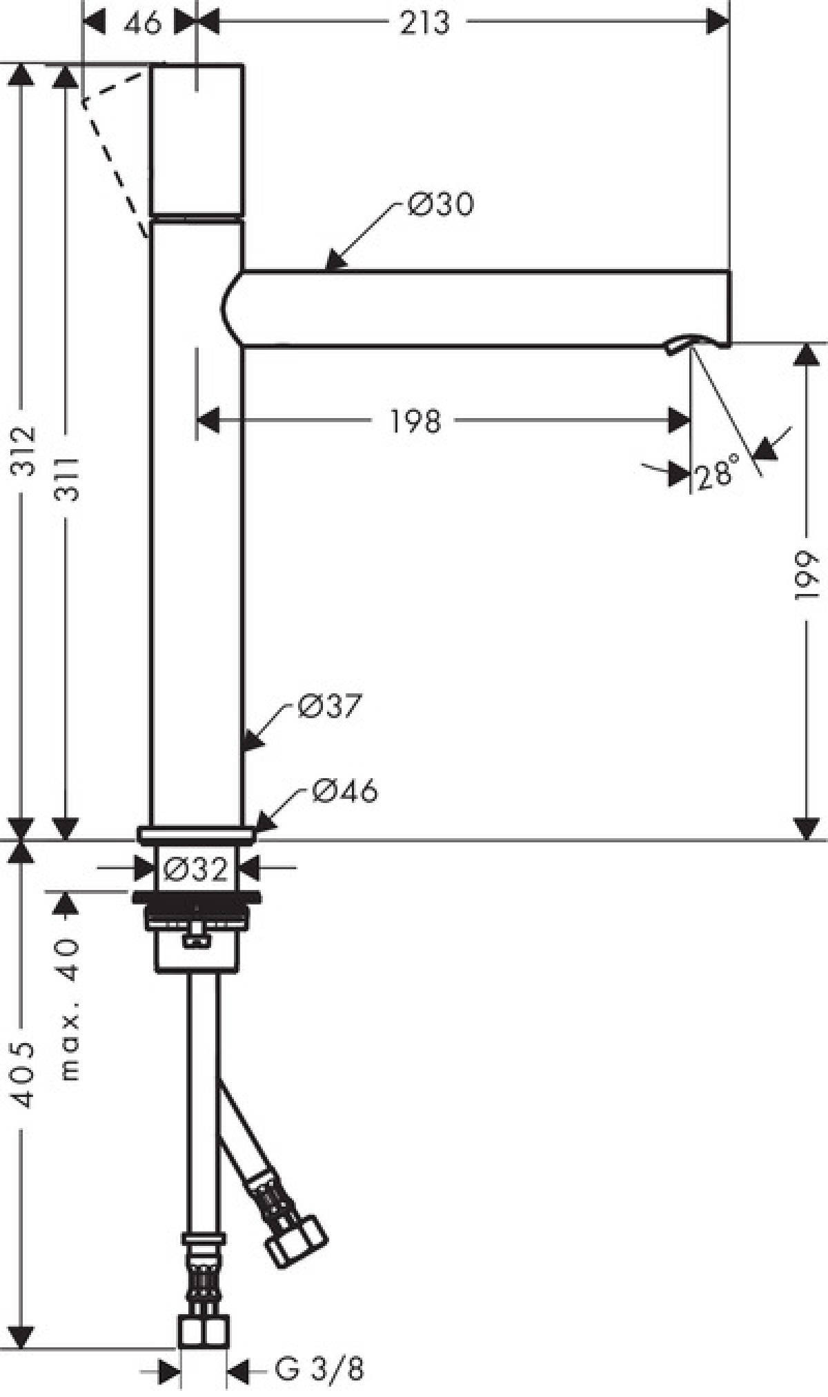 Axor UNO Mitigeur lavabo 200, poignée zéro, bonde à écoulement libre, nickel brossé (45003820)