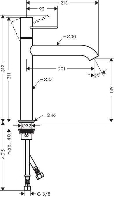 Axor Mitigeur lavabo 190, poignée étrier, bonde à écoulement libre (38032000)