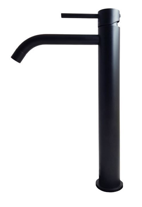 Conçu pour les vasques à poser, ce robinet se distingue par son design élancé et son fini noir mat, à la fois sobre et raffiné.
