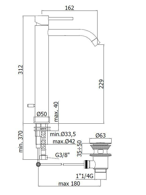 Mitigeur à levier haut pour lavabo avec tirette et vidage :