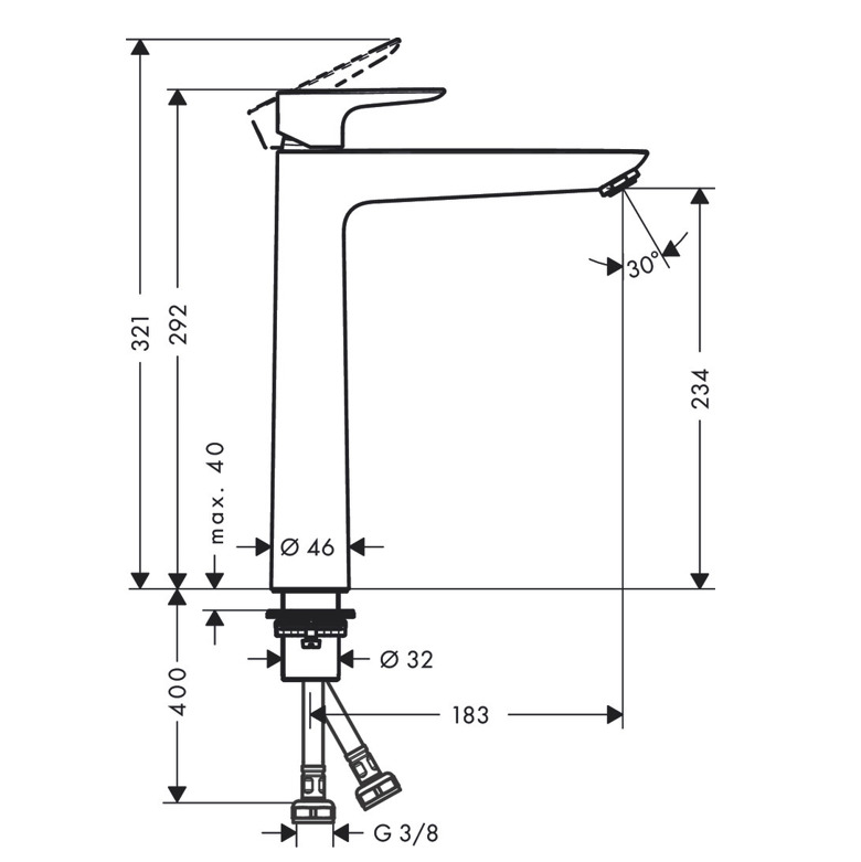 Caractéristiques du mitigeur de lavabo Talis E 240 noir mat :