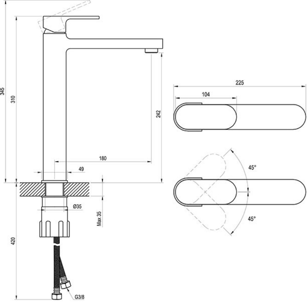 - Idéal pour: les lavabos classiques, mais aussi pour les lavabos à placer sur une plaque