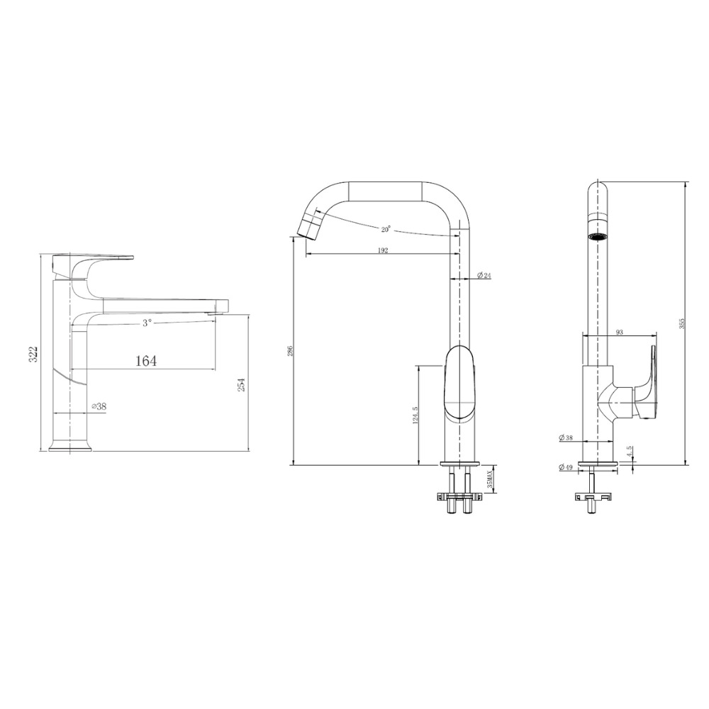 Caractéristiques du set mitigeur lavabo XL à levier + mitigeur cuisine avec bras pivotant, Swiss Aqua Technologies Dark, or brossé (SATBSDA285BZ) :