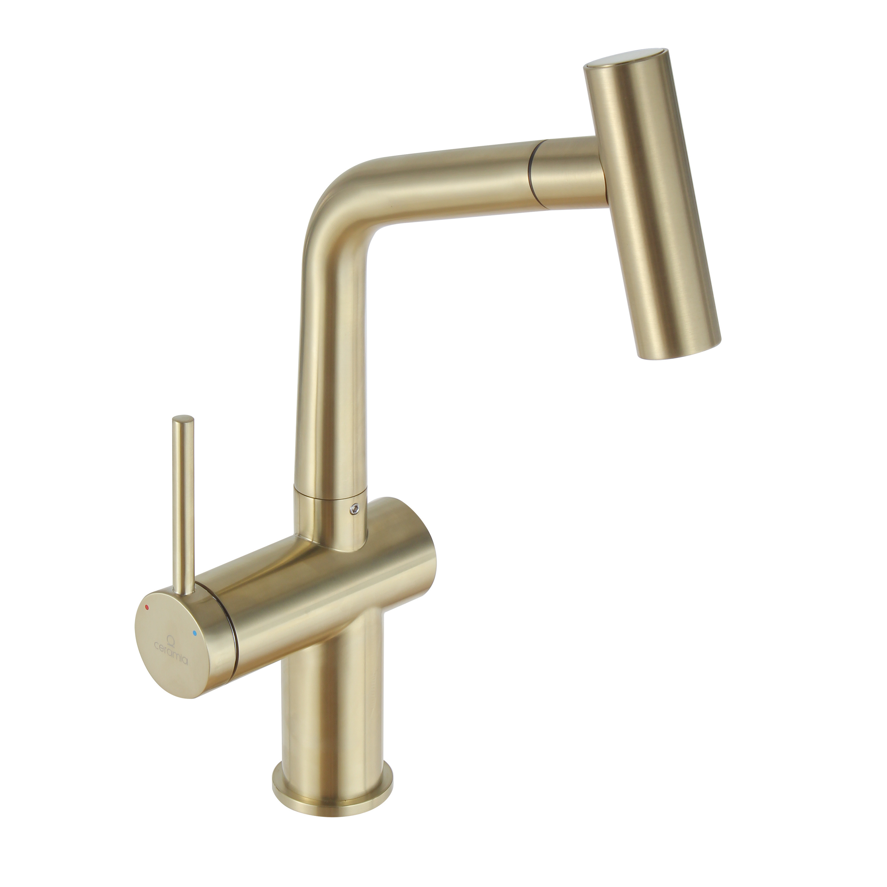 - Ceramia Timeless mitigeur d'évier à levier en acier inoxydable avec douchette extractible, monotrou, or brossé (TMLKF185BG)