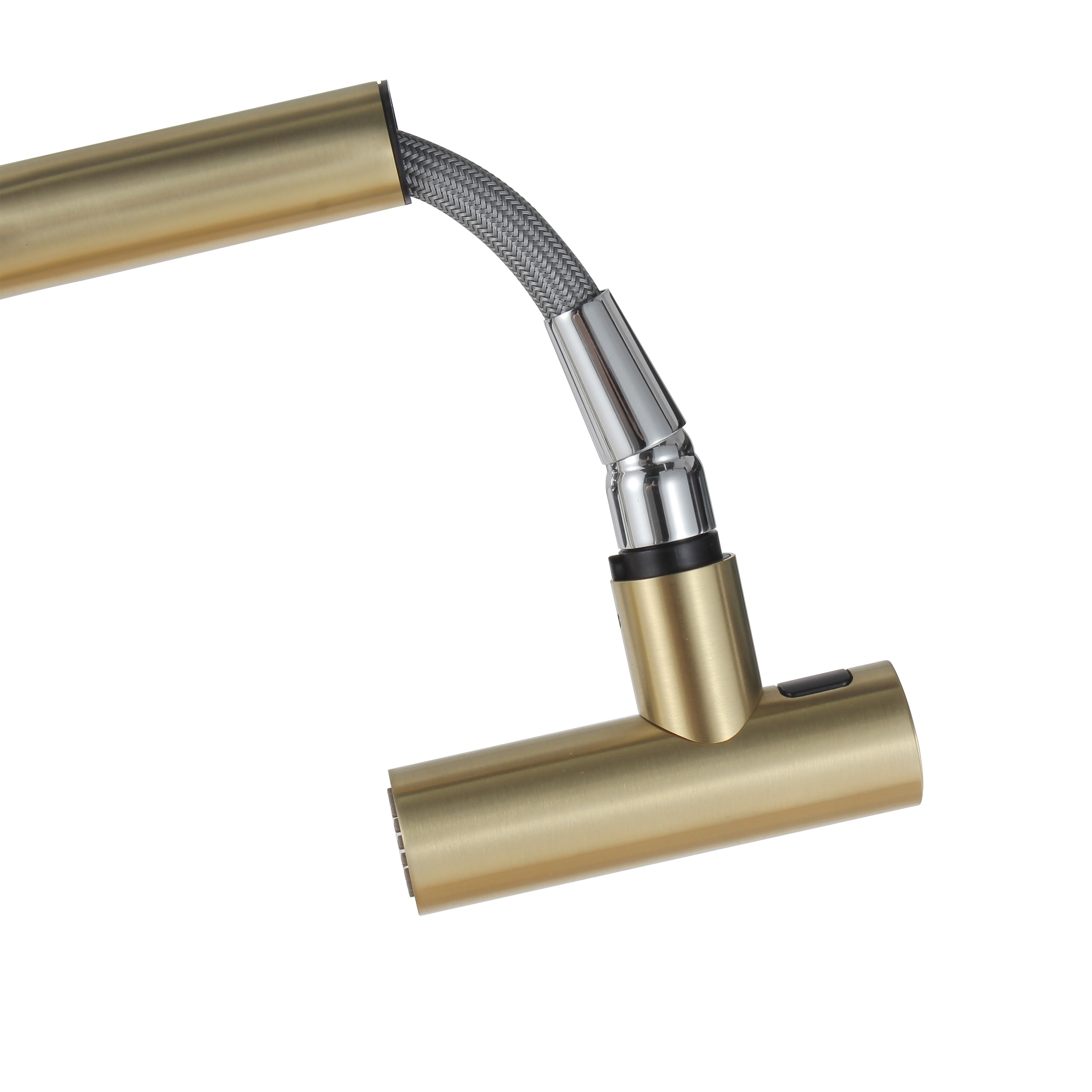 Timeless mitigeur d'évier à levier en acier inoxydable avec douchette extractible, monotrou, or brossé (TMLKF185BG) :