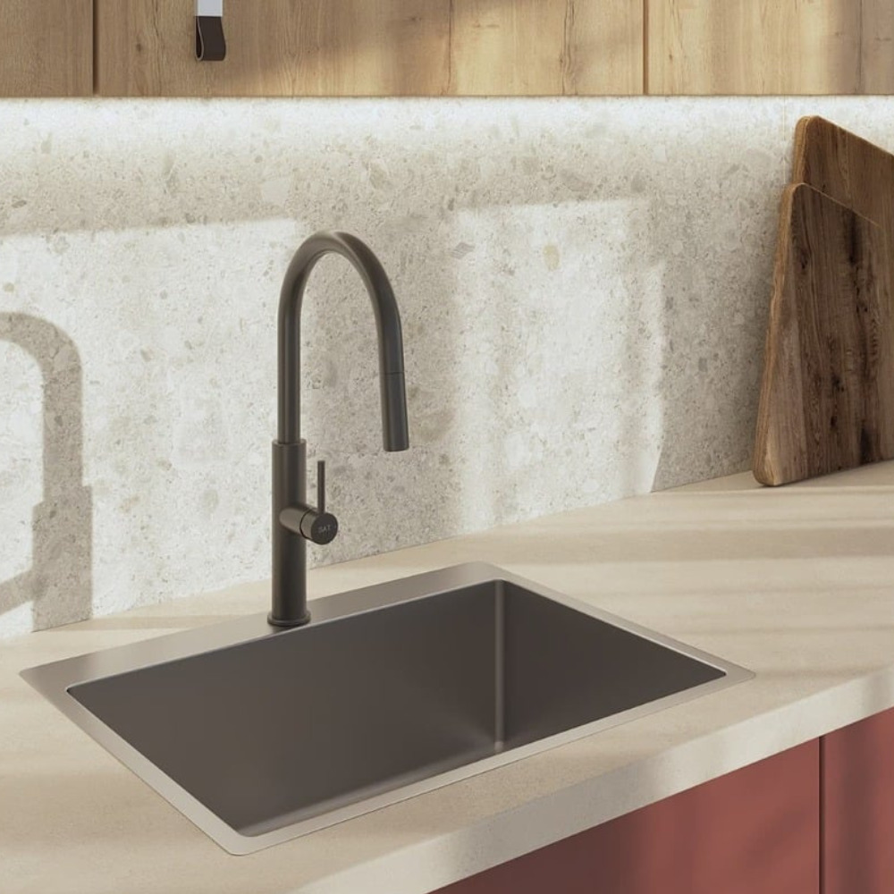 Mitigeur cuisine avec douchette extractible 2 jets, noir mat (SATBSD286C) :