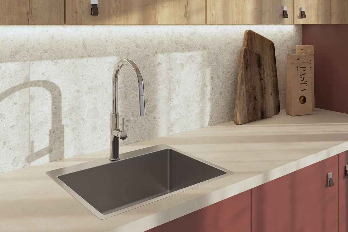 Caractéristiques du set mitigeur lavabo haut à levier, sans vidage, Swiss Aqua Technologies Brevis + mitigeur cuisine avec douchette extractible 2 jets, Swiss Aqua Technologies, chrome (SATBSBD285) :