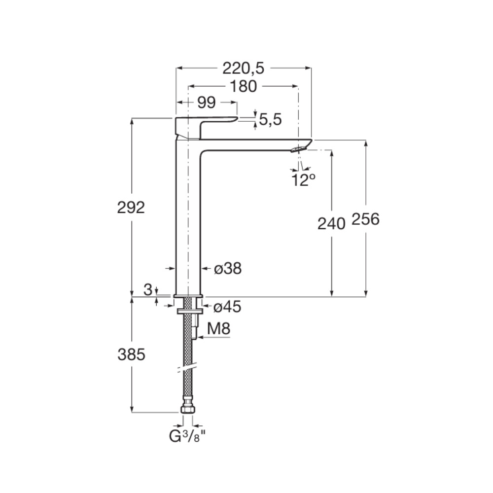 Caractéristiques du mitigeur de lavabo XL à levier, hauteur 29,2 cm, sans vidage, Roca Cala, noir mat (A5A346ENB0) :