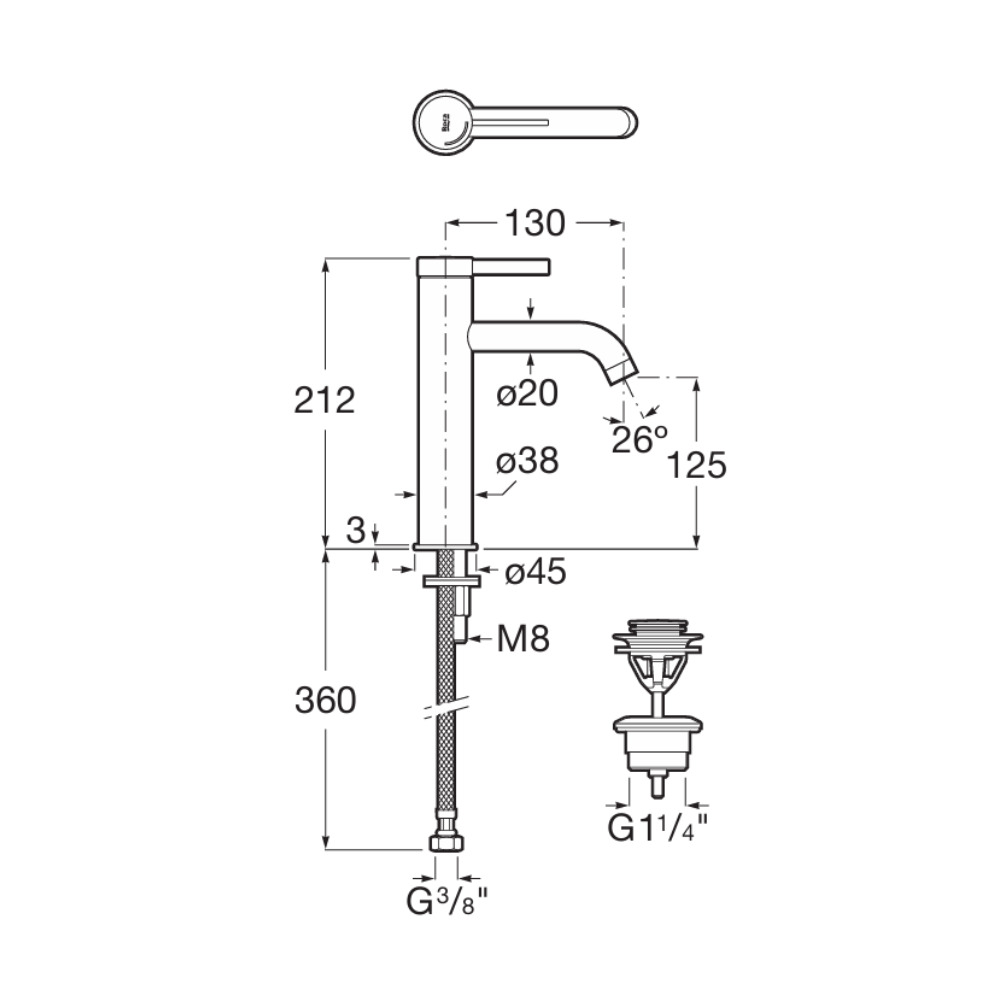 Caractéristiques du mitigeur de lavabo XL à levier, hauteur 21,2 cm, avec bonde clic-clac, Roca Ona, chrome (A5A3C9EC00) :