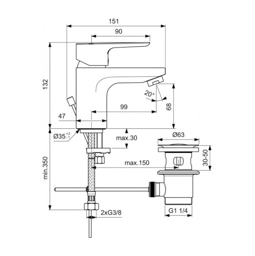 - Hauteur du mitigeur 132 mm
