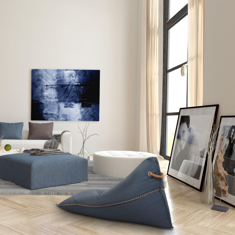 Soo Santaï Lazy Bro Indoor fauteuil poire 140x120x90cm interieur dehoussable, avec poignees et surpiqures, Bleu jeans, sans polystyrène