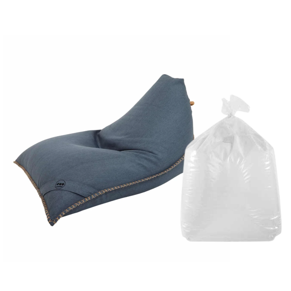 Soo Santaï Set Lazy Bro Indoor fauteuil poire + polystyrène 140 x 120 x 90cm intérieur déhoussable, avec poignées, Bleu jeans