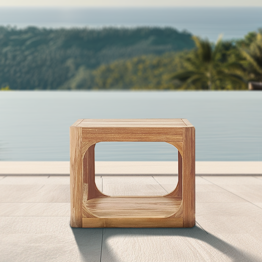 Naturel Table d'appoint de jardin en teck massif, 50x50x40 cm, deux plateaux et angle arrondie, fabrication artisanale (NATOFTB5050S)