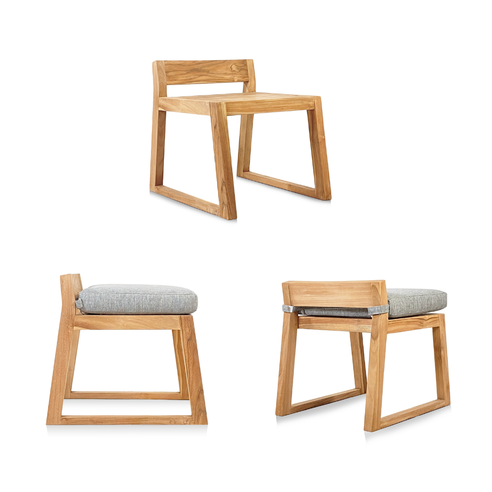 Naturel Chaise de table extérieur en teck massif, 50x59.5x56 cm, avec coussins gris perlé, sans dossier (NATOFCH50S)