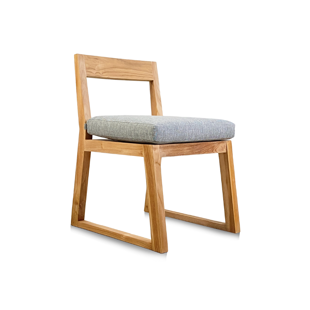 Naturel Chaise de table extérieur en teck massif, 50x59.5x79 cm, avec coussin gris perlé imperméable (NATOFCH50B)