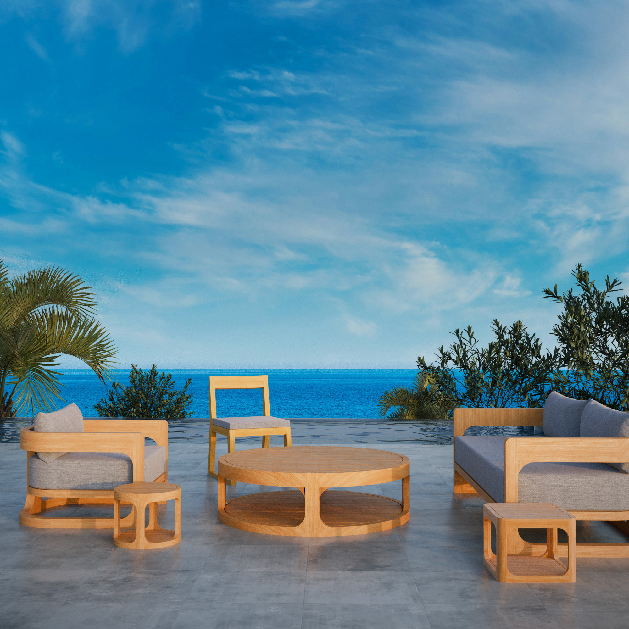 Cette chaise est accompagnée d’un coussin gris perlé spécialement conçu pour résister aux intempéries. Son matériau imperméable permet de rester dehors sous la pluie tout en conservant son confort et son élégance.