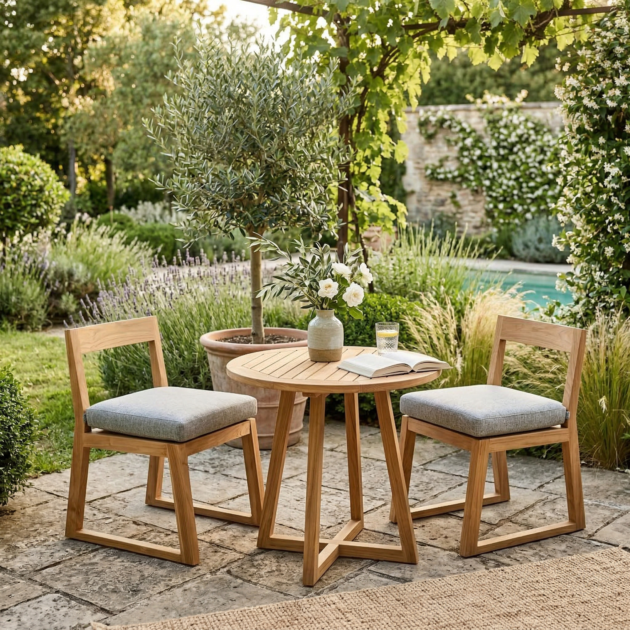 Le teck massif au charme authentique donne immédiatement un aspect chic et chaleureux à votre extérieur, comme une maison de vacances où l’on aime passer du temps.