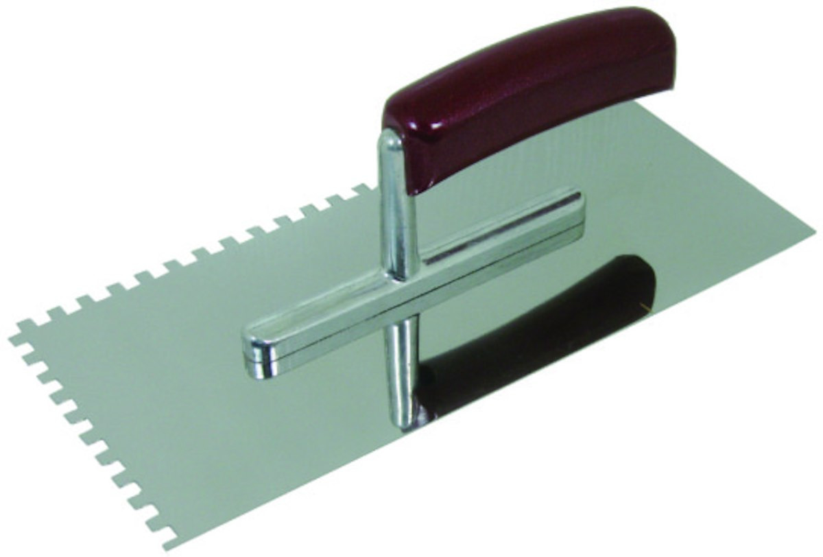 Truelle à dents utilisée pour l'application de colles sur les carreaux. Dent 8 mm.