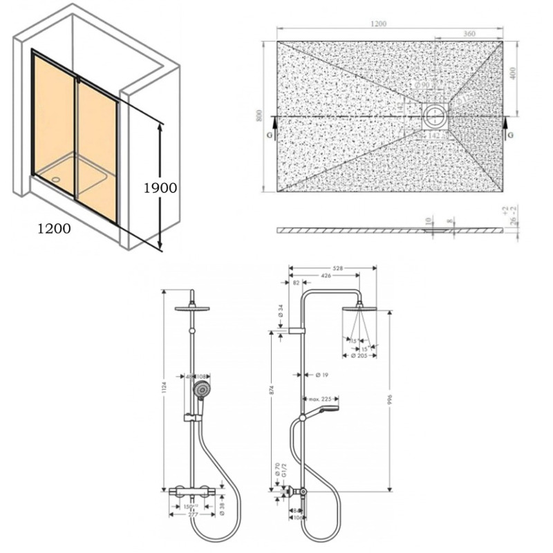 Caractéristiques du Pack douche Porte coulissante 120cm + Colonne de douche avec mitigeur thermostatique Hansgrohe + Receveur Satalek 120x80cm, Noir (HuppeHansgrohe1-12080BL-6) :