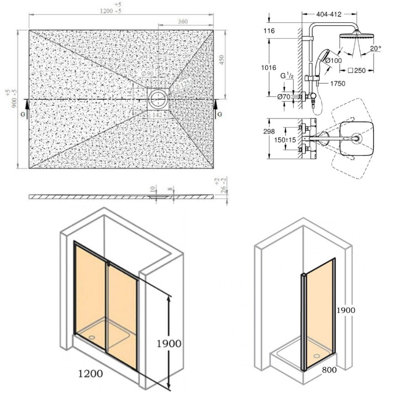 - Largeur receveur (cm):80