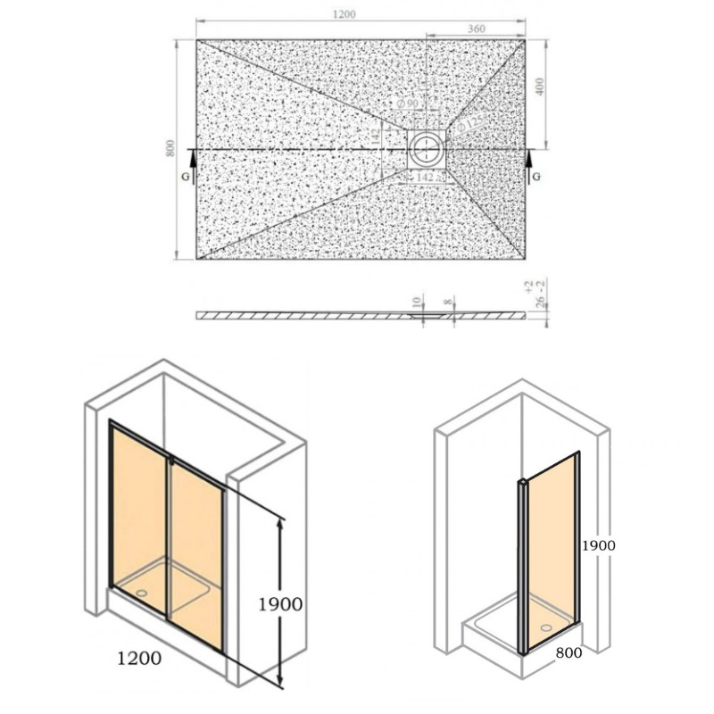 - Largeur receveur (cm):80