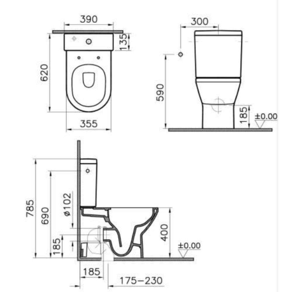 Vitra Integra Pack WC à poser sans bride avec abattant frein de chute et réservoir, Blanc (9859-003-7202)