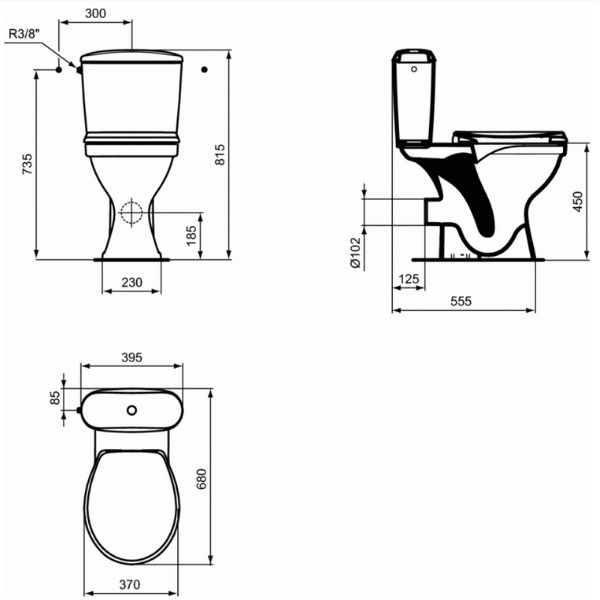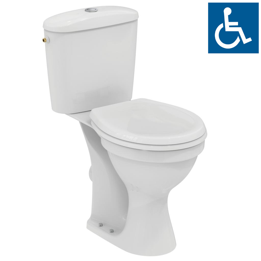 Ideal Standard Astor 2 - Pack WC à poser PMR sans bride et surélevé + Abattant avec frein de chute (R038101)