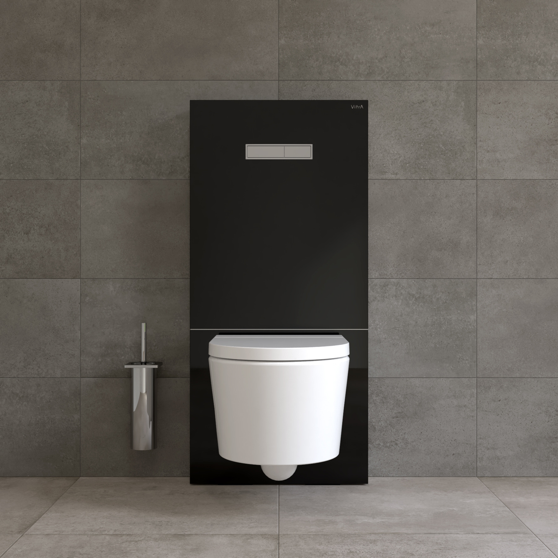 Vitra Pack WC Bâti support en verre trempé/aluminium brossé avec plaque intégrée, Noir + WC sans bride SAT + Abattant softclose
