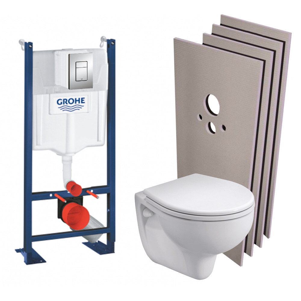 Grohe Pack WC autoportant + WC suspendu KOLO by Geberit + Abattant en Duroplast + Plaque chrome + Set Habillage (ProjectRekord-1-sabo)