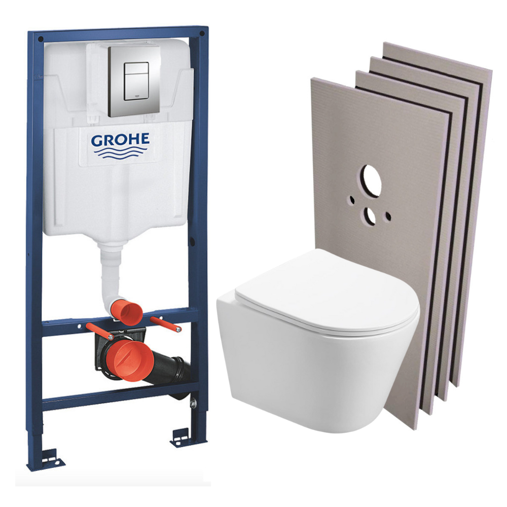 Grohe Pack WC Bâti-support + WC SAT Infinitio sans bride, fixation invisible + Plaque chrome + Set d'habillage