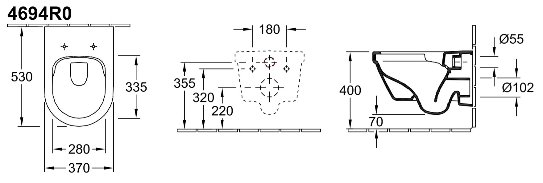 - Villeroy & Boch Architectura Cuvette seule sans bride à fond creux, DirectFlush, sortie horizontale (4694R001)