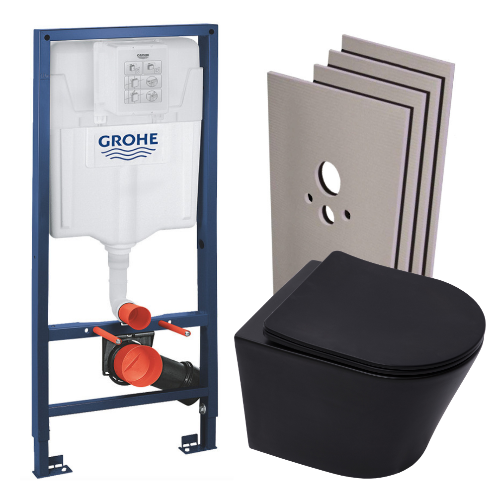 Grohe Pack WC Bâti-support Rapid SL + Cuvette SAT Infinitio noire mat + Abattant frein de chute + Plaque Chrome + Set habillage