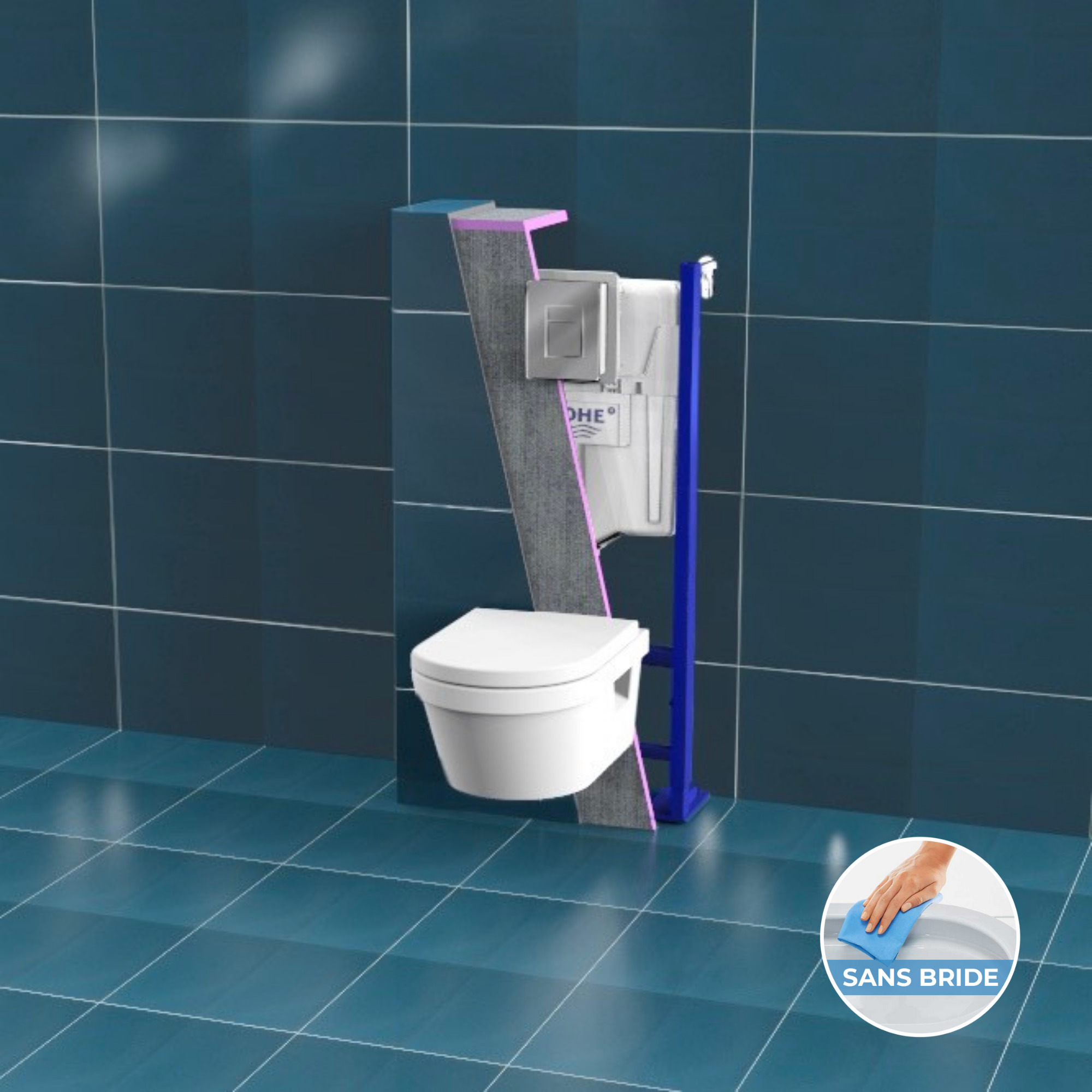 Grohe Pack bâti autoportant + Cuvette sans bride + Abattant softclose + Set habillage (ProjectArchirim-1-sabo)