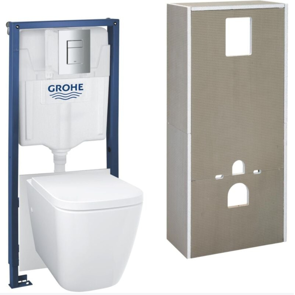 Solido pack WC suspendu + cuvette sans bride + plaque de commande chromée, isolant et habillage à carreler (G36535000)