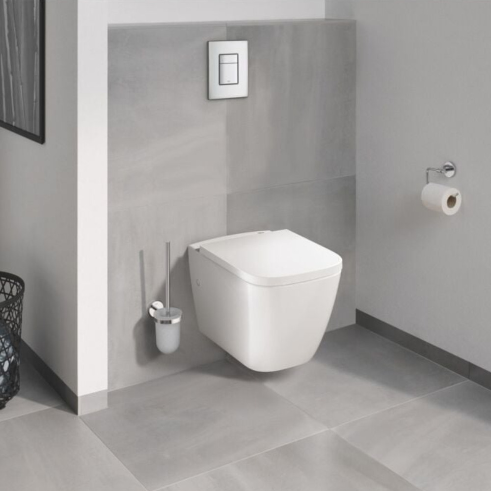 Caractéristiques du pack WC suspendu + cuvette sans bride + plaque de commande chromée, isolant et habillage à carreler, Grohe Solido (G36535000) :