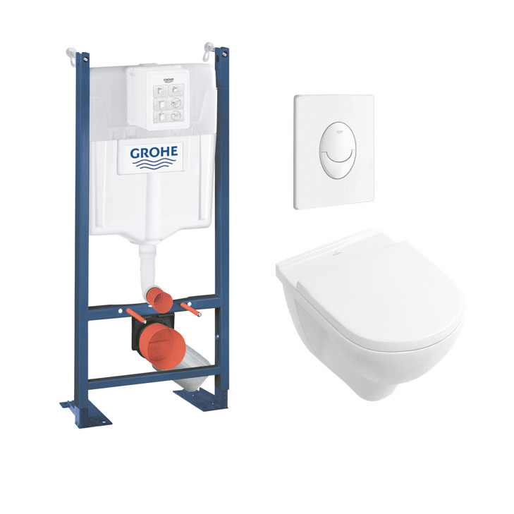 Cuvette suspendue Villeroy & Boch O.Novo ovale à fond creux + abattant frein de chute (SetO.Novo) :