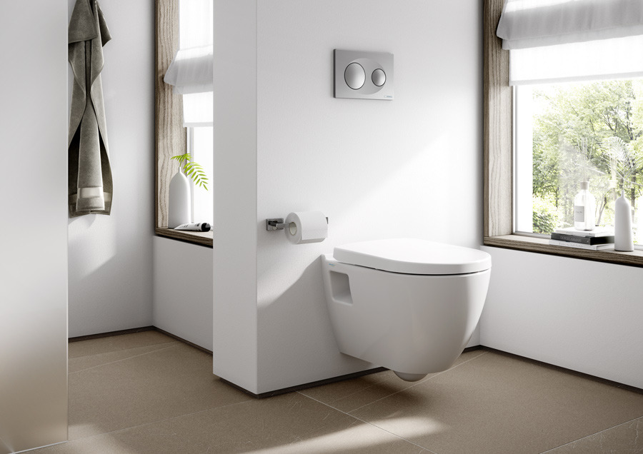 - Economie d'eau: Les flux d'eau sont optimisés de manière à ce que le jet de chasse soit projeté à grande puissance. La chasse ne nécessite donc pas une grande quantité d'eau pour rincer entièrement la cuvette des toilettes.