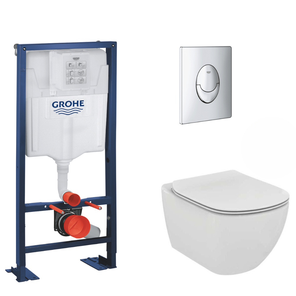Grohe Rapid SL Bâti Support autoportant, cuvette Ideal Standard Tesi Aquablade avec abattant frein de chute (AutoportantTesi2)