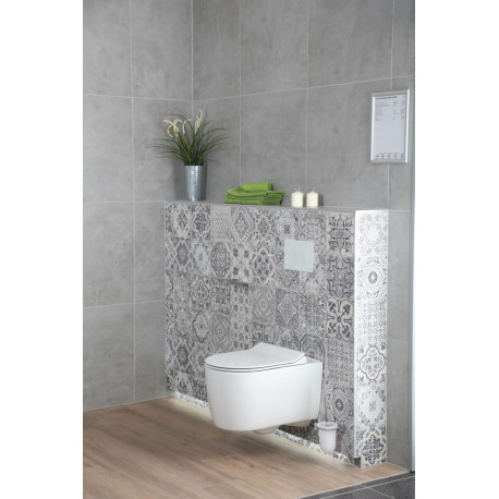 - La cuvette a une fixation cachée (il n'y a pas de trous sur les côtés de la cuvette pour la fixation au mur)