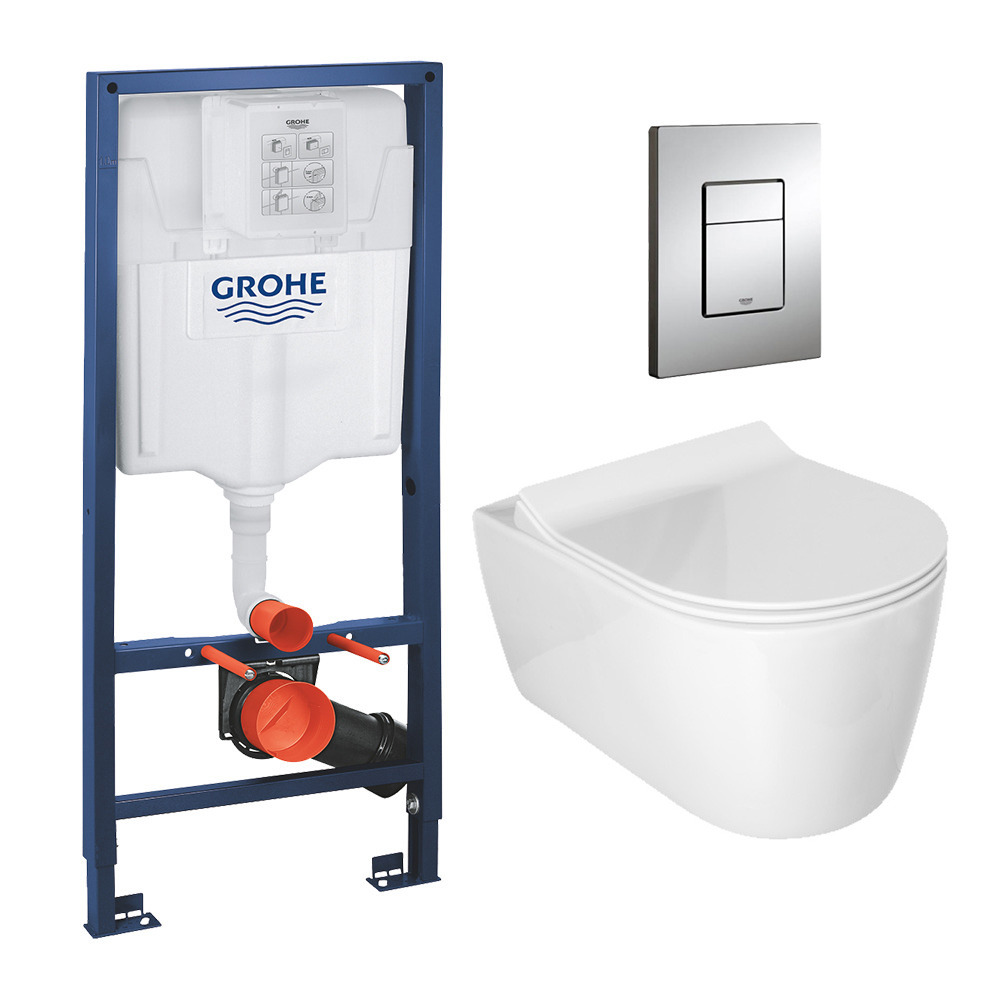 Grohe / Idevit Pack WC Rapid SL + cuvette Alfa sans bride + plaque chrome (RapidSlAlfaRimless)