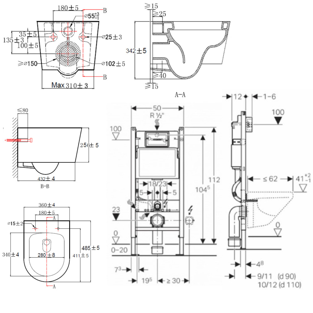 Ces bâti-supports pour WC suspendus ne peuvent être installés contre des cloisons en plaques de plâtre à âme alvéolaire en carton, contre des cloisons en plaques de plâtre sur ossature métallique ou contre des cloisons de séparation double peau en plaques de plâtre sur ossature métallique sans accessoirisation additionnelle (substitution des pieds fournis par des pieds autoportants) ou l'ajout de renforts complémentaires (à intégrer au préalable dans la cloison au niveau des fixations hautes).