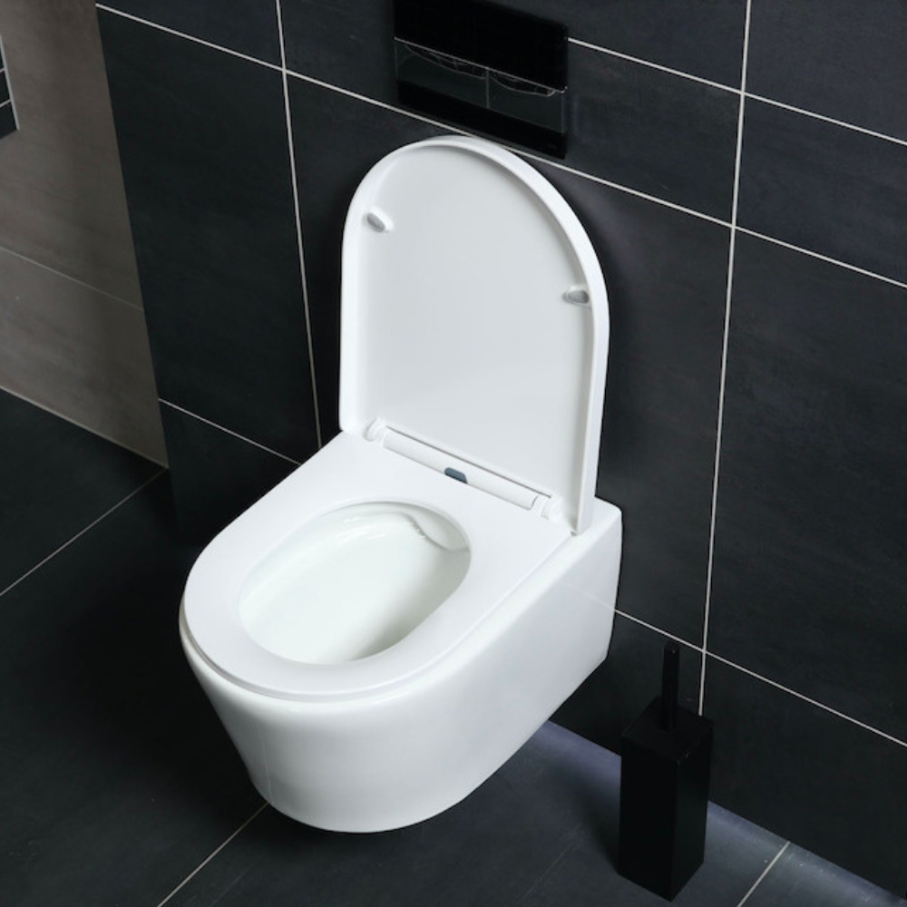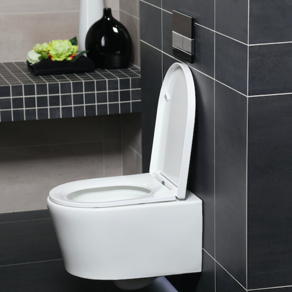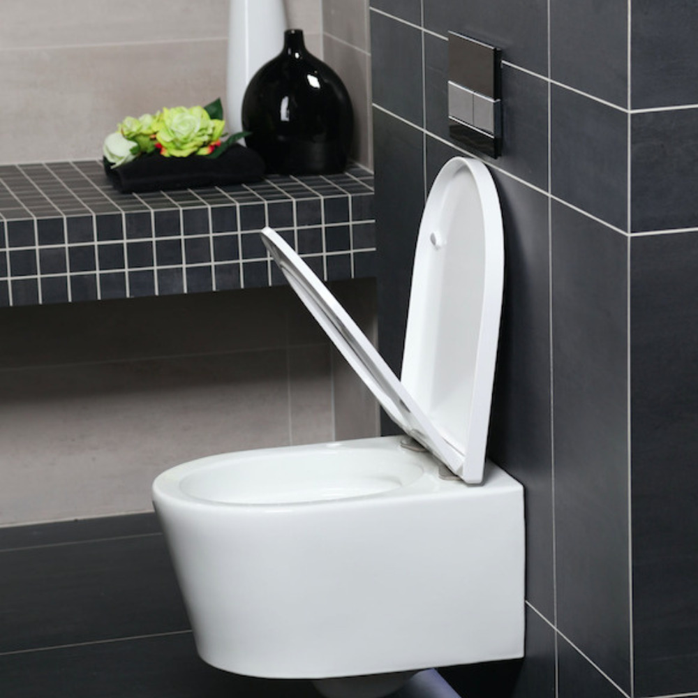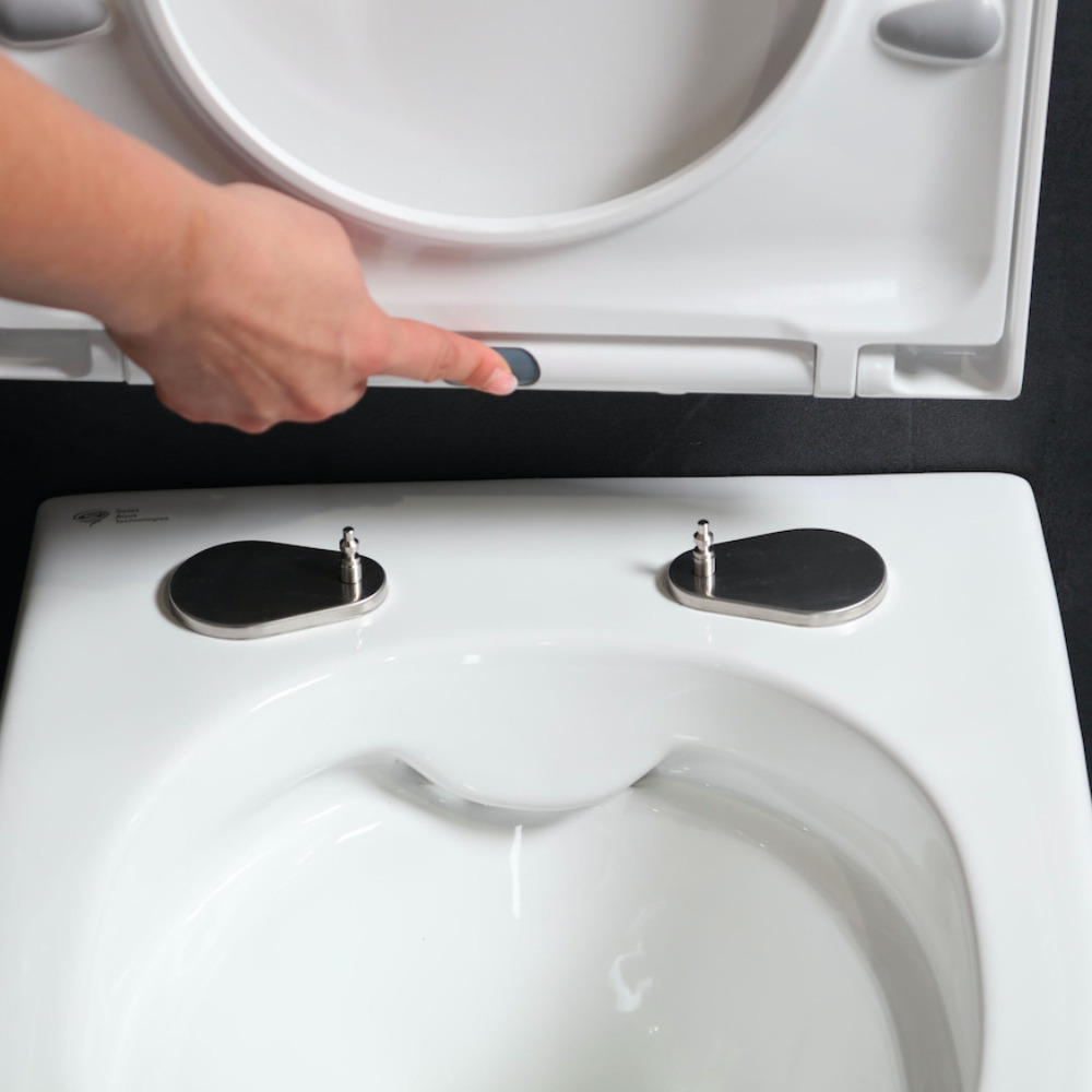 - Cuvette suspendue sans bride et fixations invisibles + abattant frein de chute (SATBRE010RREXP)