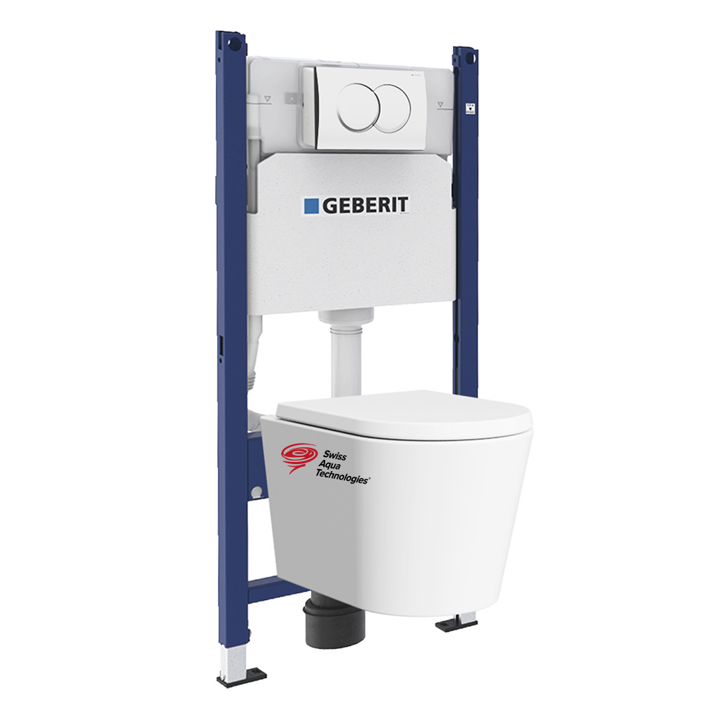 Caractéristiques du Pack Bâti-support 112cm + Cuvette Swiss Aqua Technologies sans bride + Plaque blanche (SATrimlessGeb3) :