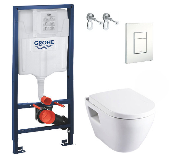 Grohe Pack Bâti-support Rapid SL + Cuvette avec abattant frein de chute + Plaque de commande Blanc Alpin (RapidSL-SM10-4)