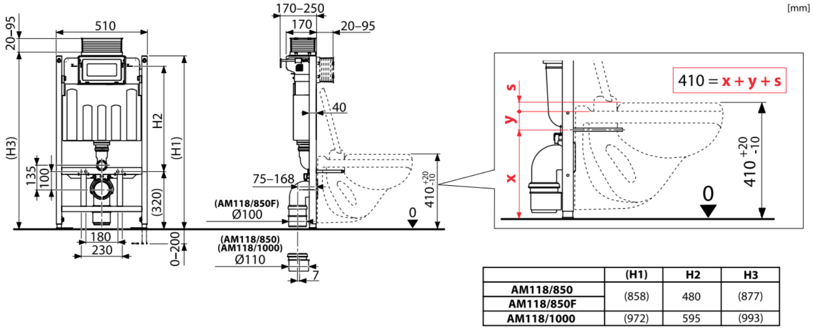 Alca Bâti-support autoportant 85cm pour WC suspendu (AM118/850F) :