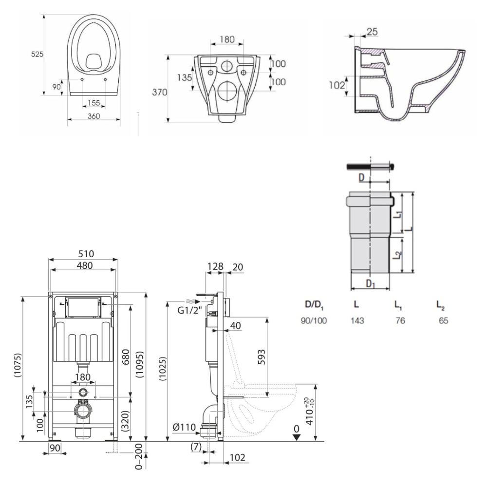 - Plage de réglage devant mur : 135-205mm (lorsque monté sur des supports muraux)