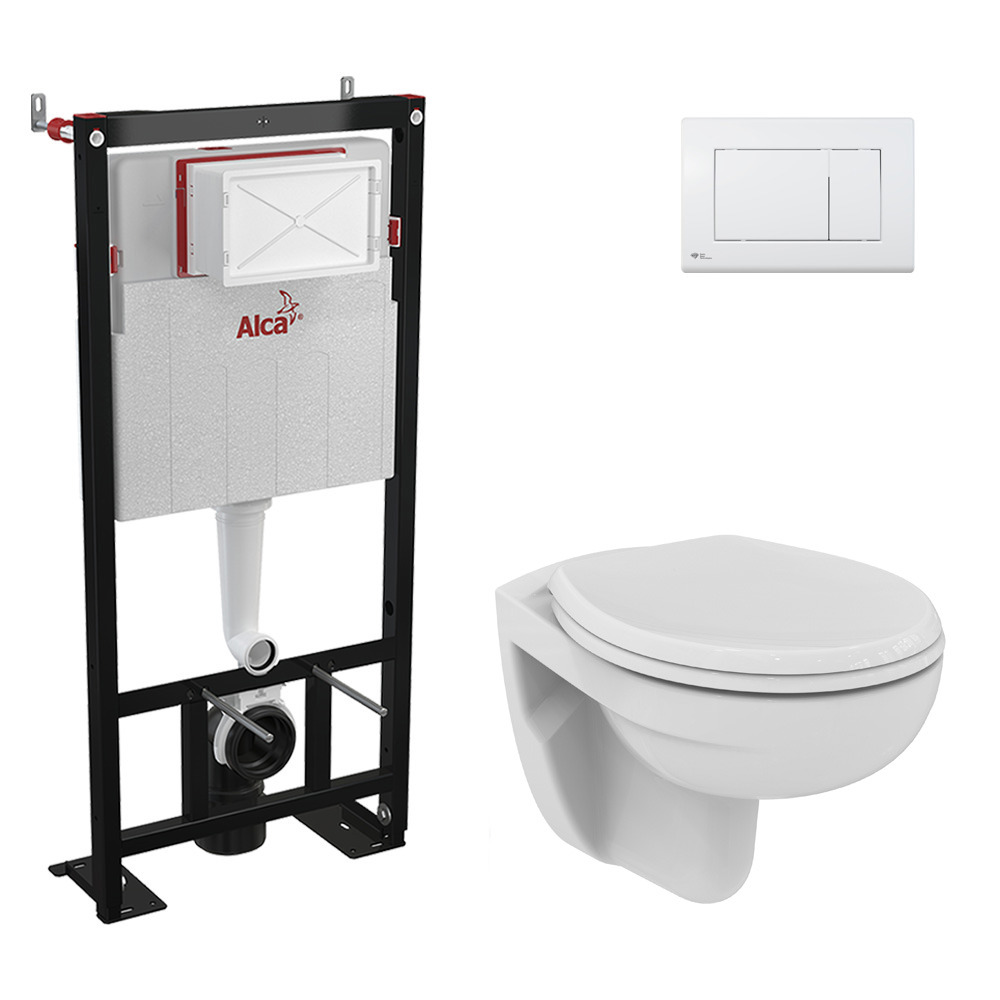 Alca Pack WC Bâti-support autoportant + WC Porcher sans bride + Abattant Astor + Plaque blanche (AlcaPorcher-M270)